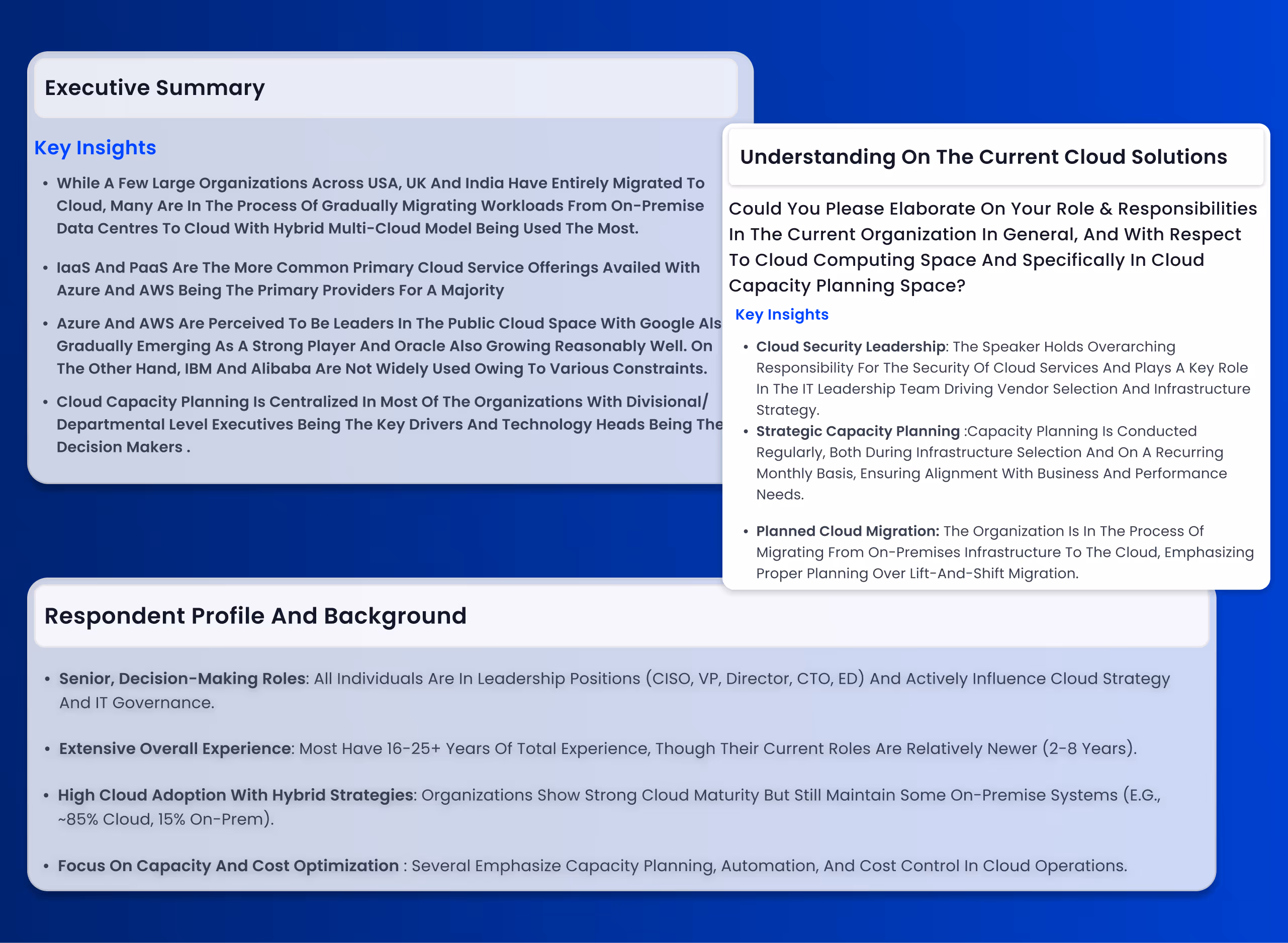 Our platform and workflows automate the repetitive, time-intensive components of research across sample operations, quality checks, data cleaning, coding, probing, tagging, analysis structuring, dashboarding, and reporting, while keeping human expertise at the center of interpretation.